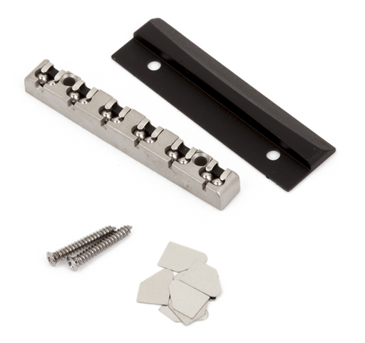 Brushed-chrome LSR roller nut assembly reduces friction that can cause tuning instability. For use on American Deluxe guitars with HSS pickup con...