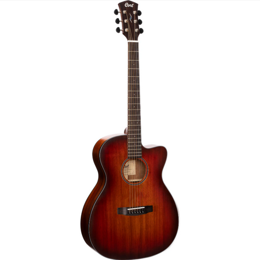 Cort Earth GO - Open Pore Brown Burst Electro Acoustic Guitar - Smart Guitar - Solid Top - 3/4 Size