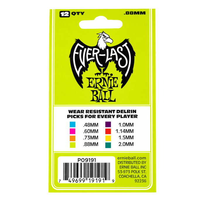 Ernie Ball 0.88mm Green Everlast Picks 12 Pack