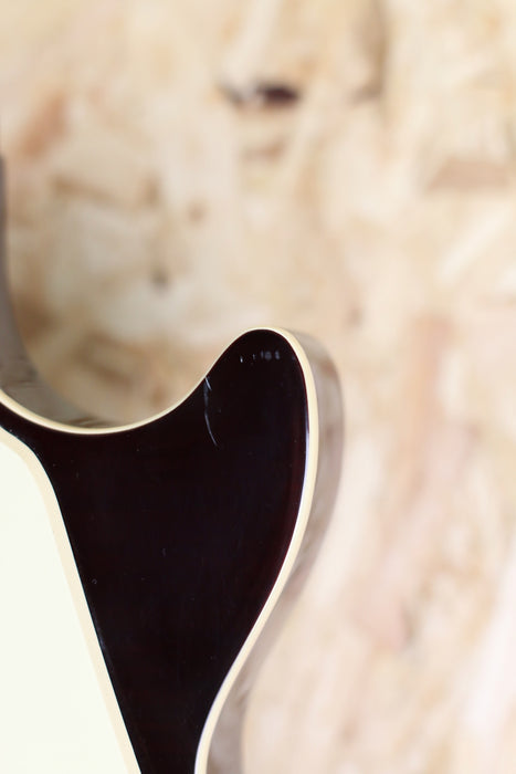 This guitar shows only minimal signs of playing wear which can be seen in the light and under closer inspection. Has a couple deep scratches around the body and average light scratching all over the guitar.
