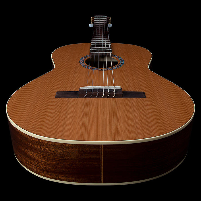 The Godin Concert is the top-of-the-line of the mahogany/cedar models. The Concert features the Custom Polished finish that is buffed down to a highly responsive high gloss finish.