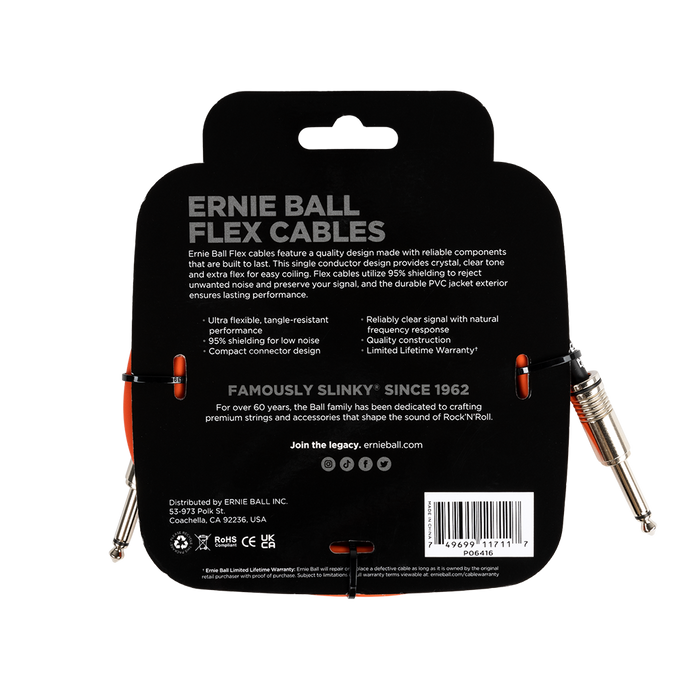 Ernie Ball Flex Instrument Cable - 10ft Orange