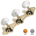Excellence in materials and craftsmanship are the hallmark features of these classic machine heads. The die cast base provides a rigid foundation for the gear and worm, assuring perfect alignment and mesh. The pearloid buttons are attached with a tension screw to provide the feel of your preference. A bearing over the worm shaft provides additional support and enhances the smooth performance. Includes wood screws.