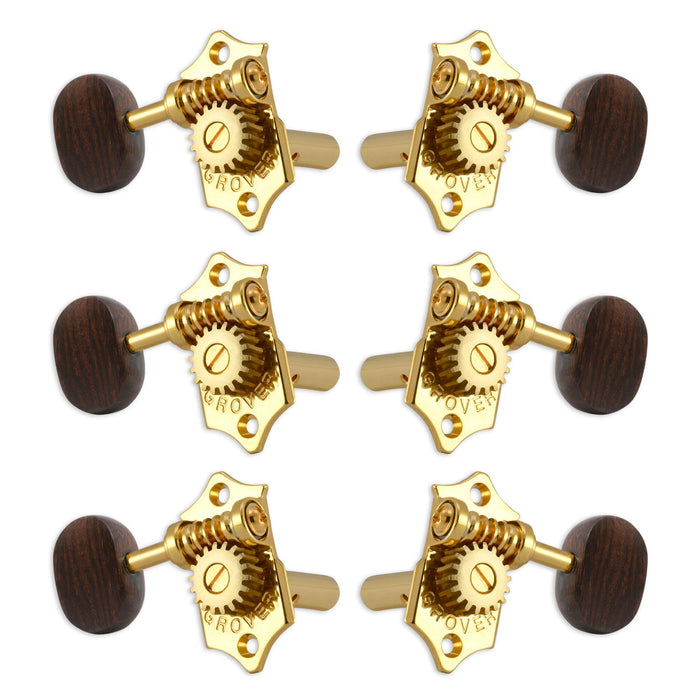 Grover STA-TITE Machineheads ~ 3+3 ~ Horizontal ~ Gold ~ Rosewood Buttons