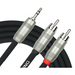 Introducing the Kirlin Patch Cable 3.5 TRS Plug To 2 x Rca Plug Y-364pr - a high-quality audio cable designed for musicians and audio professionals. This cable features a 3.5mm jack male connector on one end and two RCA/phono male connectors on the other end, making it perfect for connecting audio equipment such as mixers, speakers, and amplifiers.