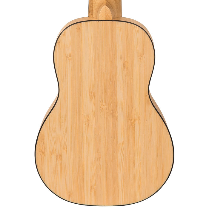 The beautiful Laka Bamboo Series Soprano Ukulele features a full bamboo construction, including the top, back, sides, neck, headstock, fingerboard and bridge.
