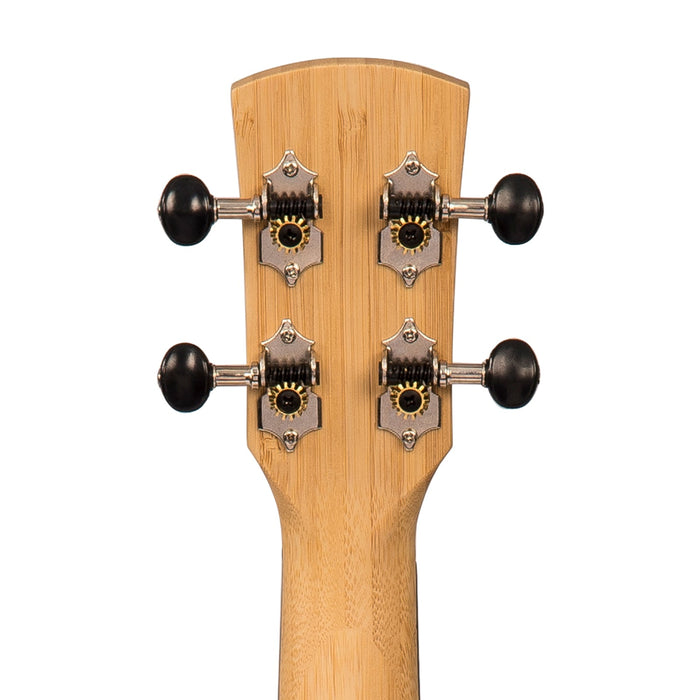 With its gorgeous natural golden colour, the Laka Bamboo Series soprano ukulele looks striking, offset with black appointments which include body bindings, bound fingerboard with black position markers, soundhole design, ABS nut and open-geared chrome machine heads with black buttons.