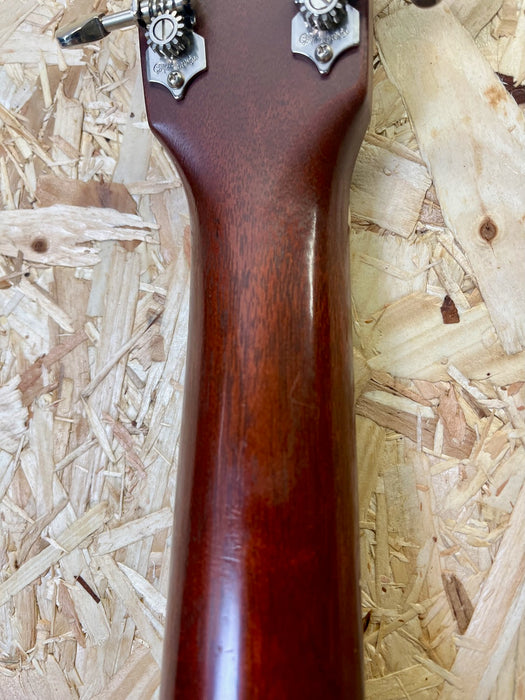 Some wear on the rear of neck and to corner of guitar. In general light wear from playing. Some light fret wear, as shown in the photos.
