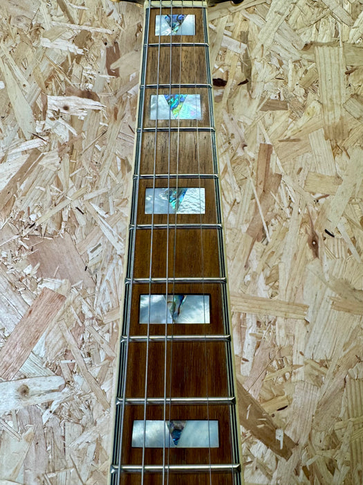 This guitar only has very light scratching to the finish, ever so slight fretboard wear, light ageing of the hardware, and one small crack in the finish where the heel meets the body.