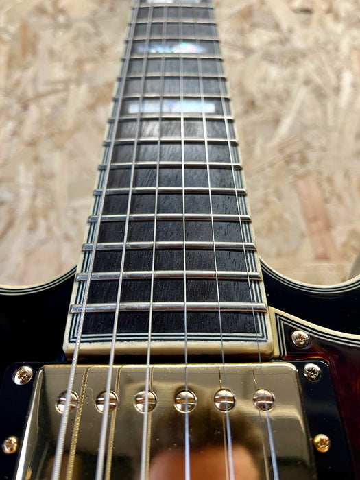 This guitar shows only minimal signs of playing wear which can be seen in the light and under closer inspection.