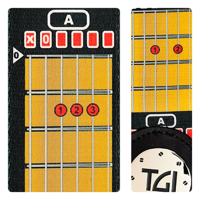 Nylon Weave guitar strap with graphic print. Leather ends.