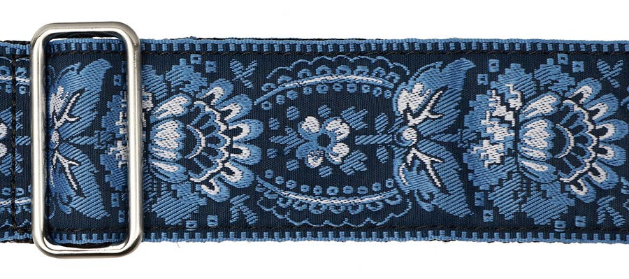 Vintage Jacquard Weave Premium Guitar Strap Cotton/Leather - Dark Blue/Grey
