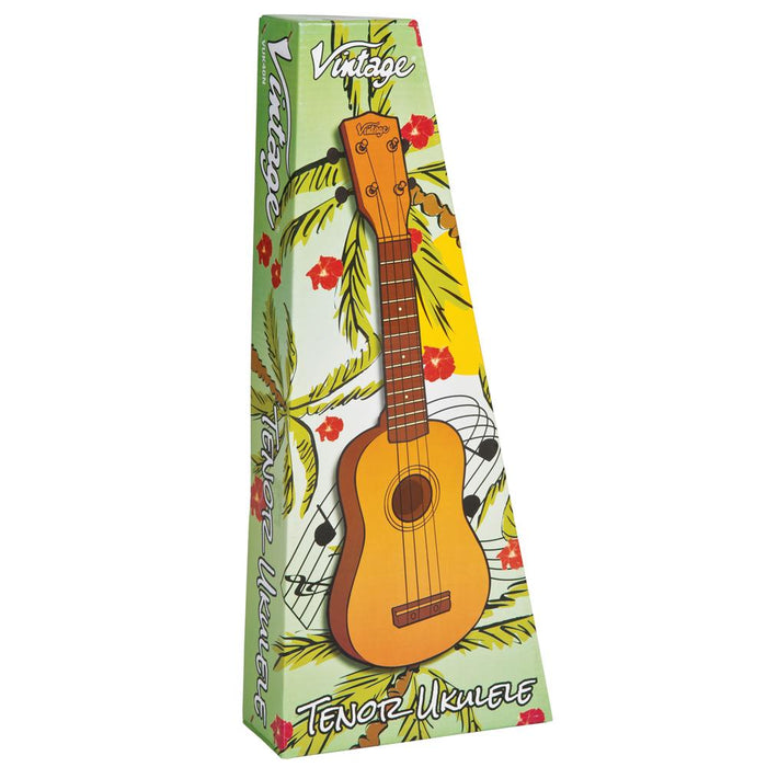 The natural finished Vintage VUK40N Tenor Ukulele size is arguably the most popular among professional players, but like the Vintage soprano and tenor models, is still ideal for beginners or indeed, for players of any skill or experience.
