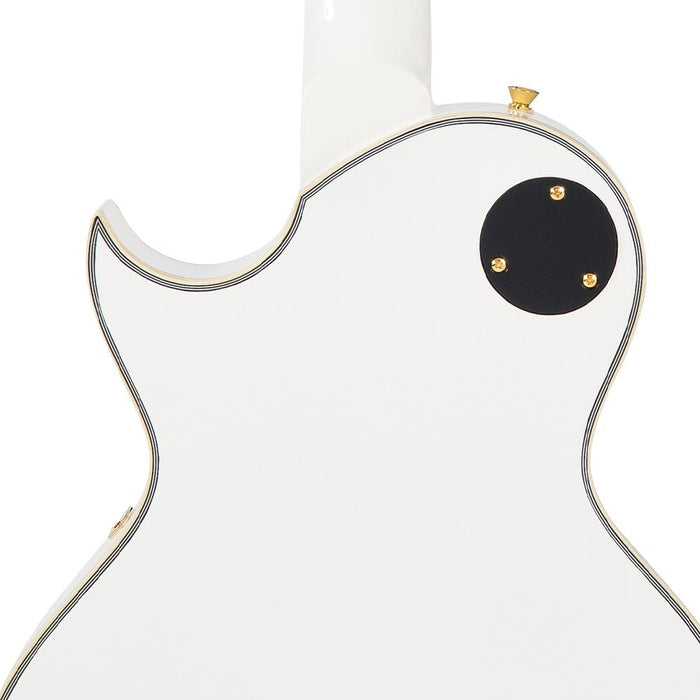 Introducing the Vintage V1003AW, equipped with a trio of Wilkinson WOCHB double coil pickups, this is a guitar that goes beyond the limits of the single cut away, solid body electric. Resplendent in Arctic White finish with luxurious gold hardware, the Vintage V1003AW allows you to discover new sonic possibilities in a guitar that still feels like your old favourite.