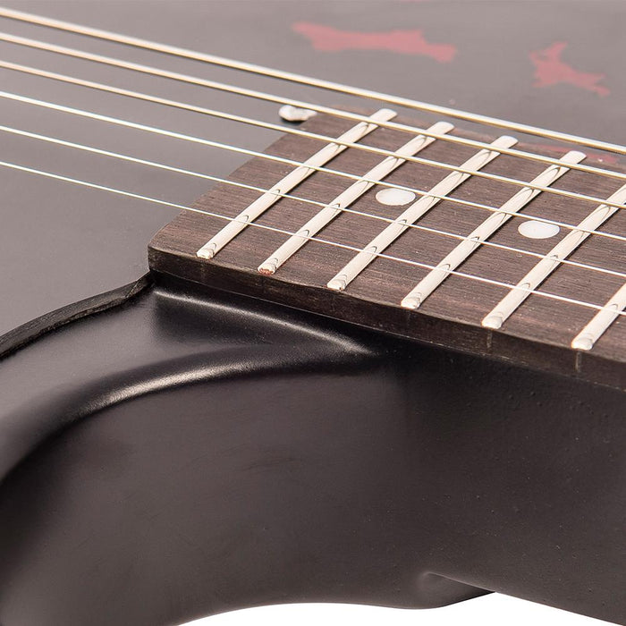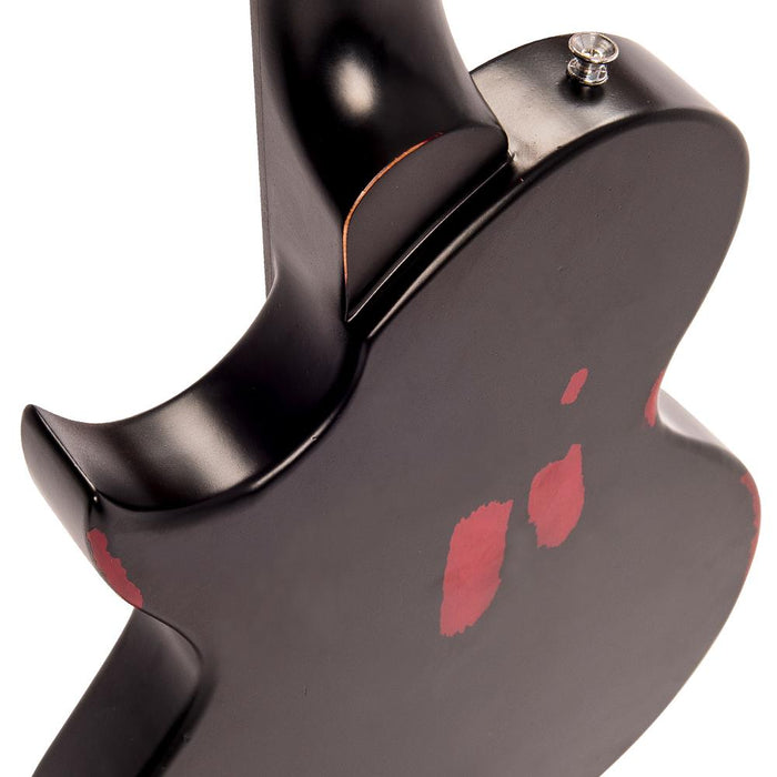 Even with knocked about visuals, you can help but want to cherish this new V120 in Distressed Black-over-Cherry Red. This new colour-over-colour finish, works harmoniously to deliver a unified work of art. But it’s the no nonsense, tried and tested one pickup format that so many down to earth players will adore. They know just how many sounds you can get from one hot, tone-filled pickup and an all mahogany construction. Added luxuries include descending bass side body shoulder, offset heel for improved fretboard access and distressed Wilkinson hardware, including that awesome Wilkinson W90SK pickup.