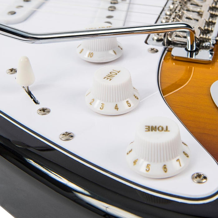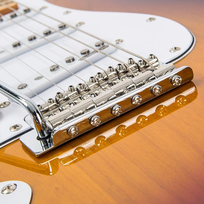Balanced set of Wilkinson WVS vintage-voiced Alnico V pickups, with staggered, chamfered edge pole pieces, for authentic tone and contemporary power. Reverse wound, reverse polarity centre pickup provides hum cancelling in switch position 2 and 4.